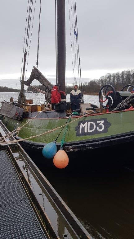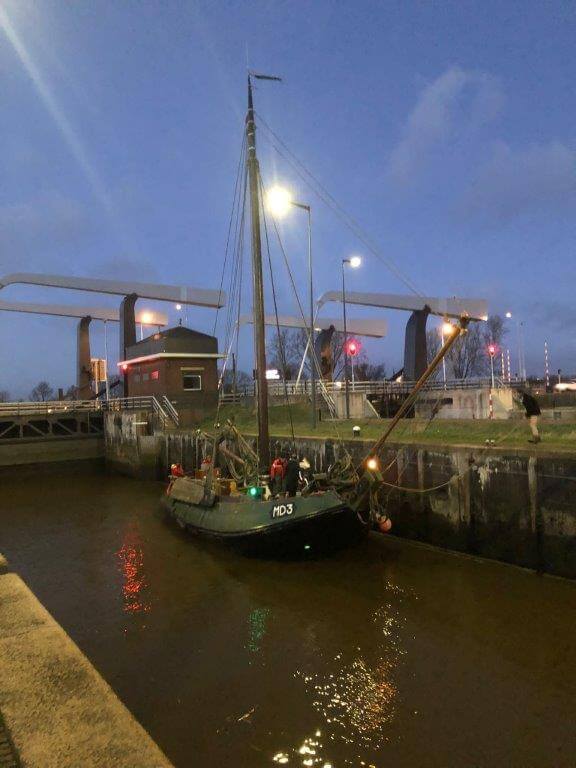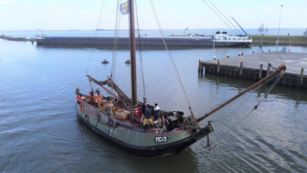Rond 14.30 is de MD3 op het havenhoofd in Middelharnis. Historische scheepjes zoals de Anna Jacoba en o.a. een zalmschouw verwelkomen de MD3 op het Haringvliet en voeren gezamenlijk naar de oude thuishaven in havenkom van Middelharnis. Aan het vingerling is een kleine ontvangstborrel aan boord van de MD3 aan de langsteiger gelegen voor de plaatselijke HORECA. Al met al een geslaagde tocht van Enkhuizen naar Middelharnis.