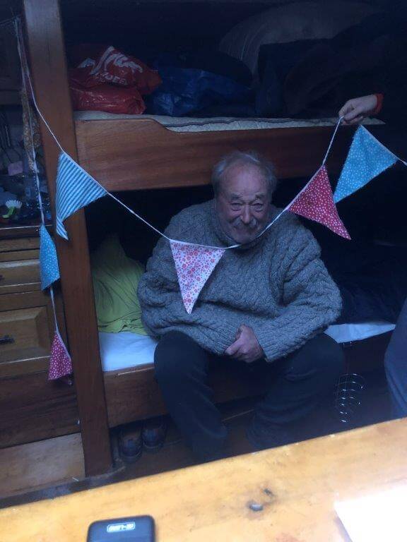 Na een korte nacht van een paar uur slapen heeft Loes een stevig ontbijt verzorgd met broodjes spek en ei. Vol goede moed en iets te laat vertrokken waardoor we draaitijden van de bruggen bij Aalsmeer/Schiphol net hebben gemist. Dit zorgde voor een paar uur vertraging. Gelukkig kon met een binnenvaartschip worden opgevaren waardoor alle hefbruggen op de Gouwe samen voor ons open gingen. Bij de versmalling in de Gouwe werden we gesommeerd onmiddellijk te stoppen en af te meren gezien een groot schip van de andere zijde kwam. Hier stapte tevens een neef van Henk aan boord. Ondertussen kwamen diverse telefoontjes van Menheersenaars binnen die via A.I.S. de tocht volgden met de vraag; waarom we wederom stopte. Het binnenvaartschip had helaas wel door kunnen varen dus nu stonden we er alleen voor. Op het nippertje werd de Spoorbrug bij Gouda gehaald, dankzij medewerking van de sluiswachter van de Julianasluis in Gouda. Hij regelde dat de Galekoppenbrug en Amaliabrug aansluitend opengingen waardoor de spoorbrug net gehaald werd. In rustig tempo door naar de Julianasluis de Hollandse IJssel af tot de stuw en de Algera brug. Die avond nog is een brugwachter geregeld dankzij contactgegevens via onze sluiswachter Sylvia. Op deze locatie is overnacht.