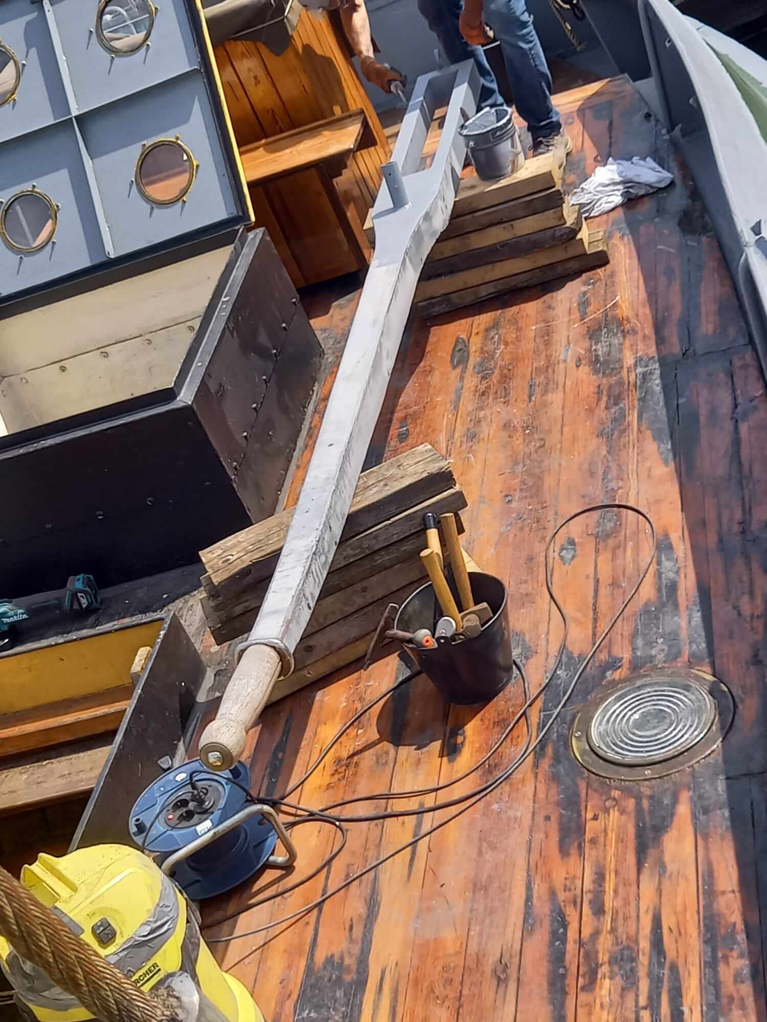 Lassen schuren slijpen bikken en plekken. Team MD3 in volle gang. Parthouder Godert Wieringa heeft zich bij het team vrijwilligers gemeld vandaag. Donderdag komt verjonging.